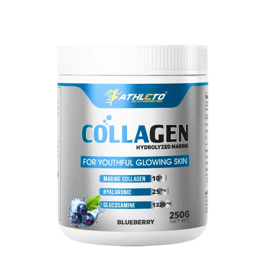 Athleto Marine Collagen|250 grams | Blueberry |Type 1 & Type 3 Collagen|Hydrolyzed Peptides |Hyaluronic Acid|Biotin |Vitamin C |Glucosamine
